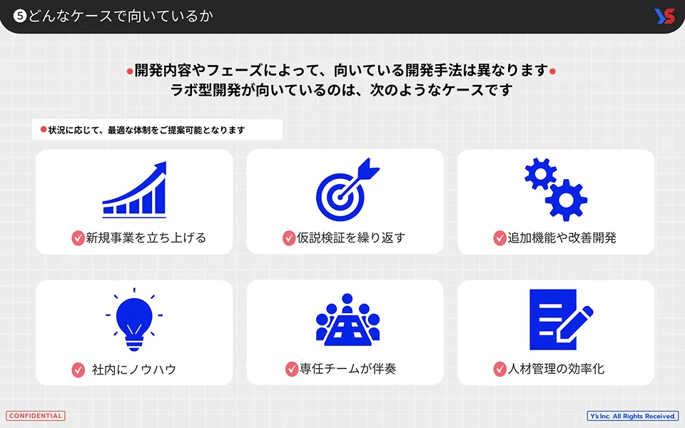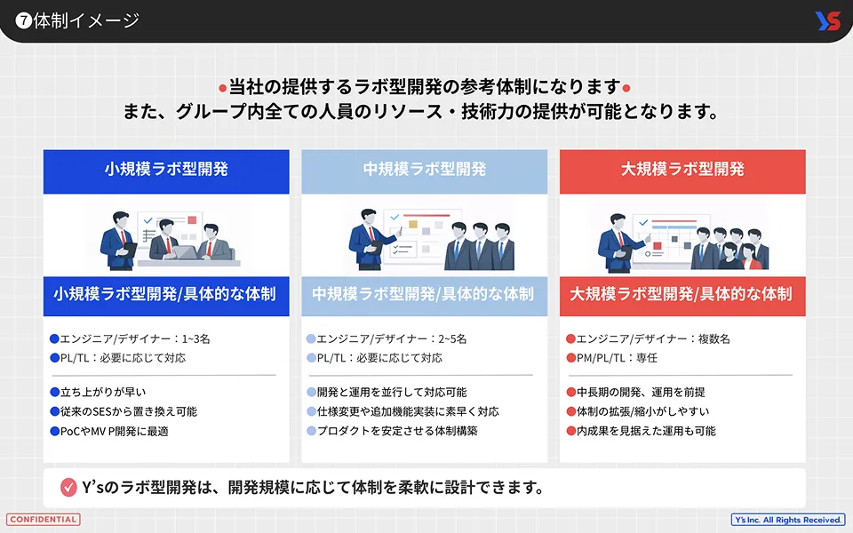 本資料では、Y’sのラボ型開発における概要・特徴・体制イメージ・費用感・導入の流れをコンパクトにまとめています。